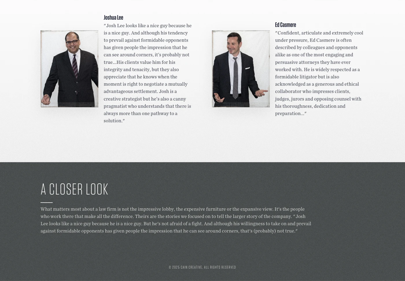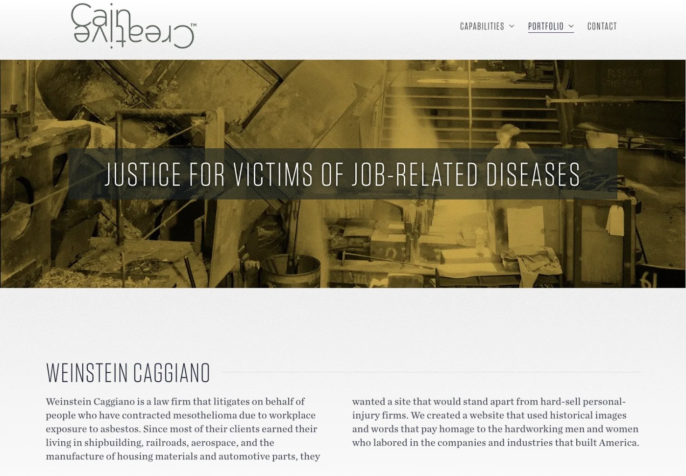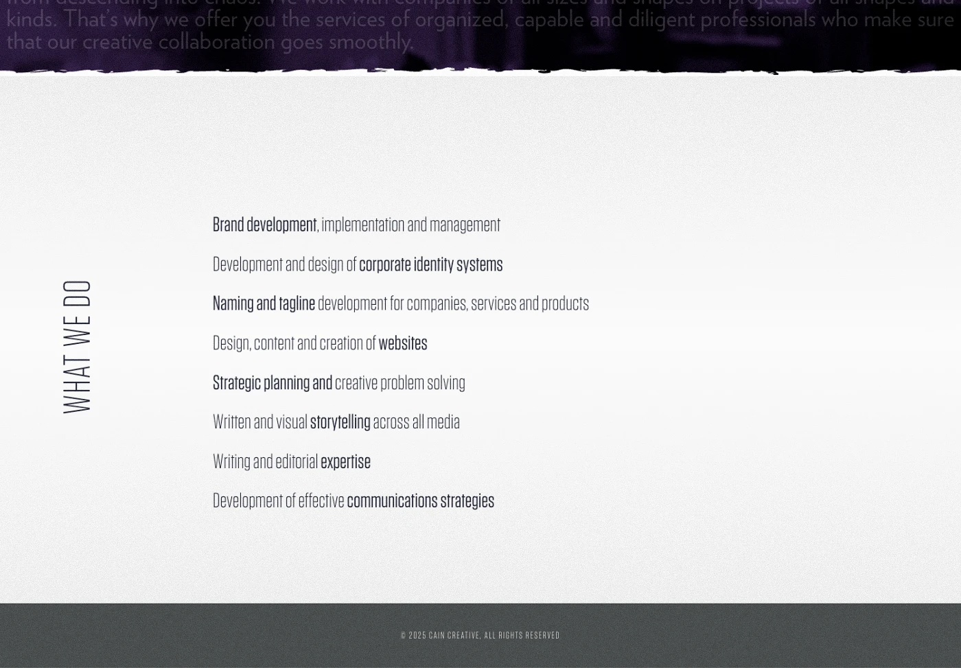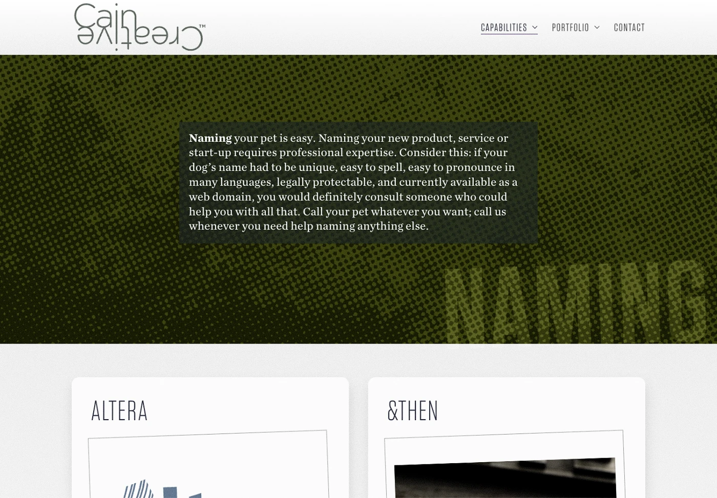 Cain Creative has a long history of working with major consumer and technology brands, and their new site needed an attitude of being slightly askew in words and pictures. So we tipped everything a few degrees, including titles and hero pics, as a fundamental part of their look.