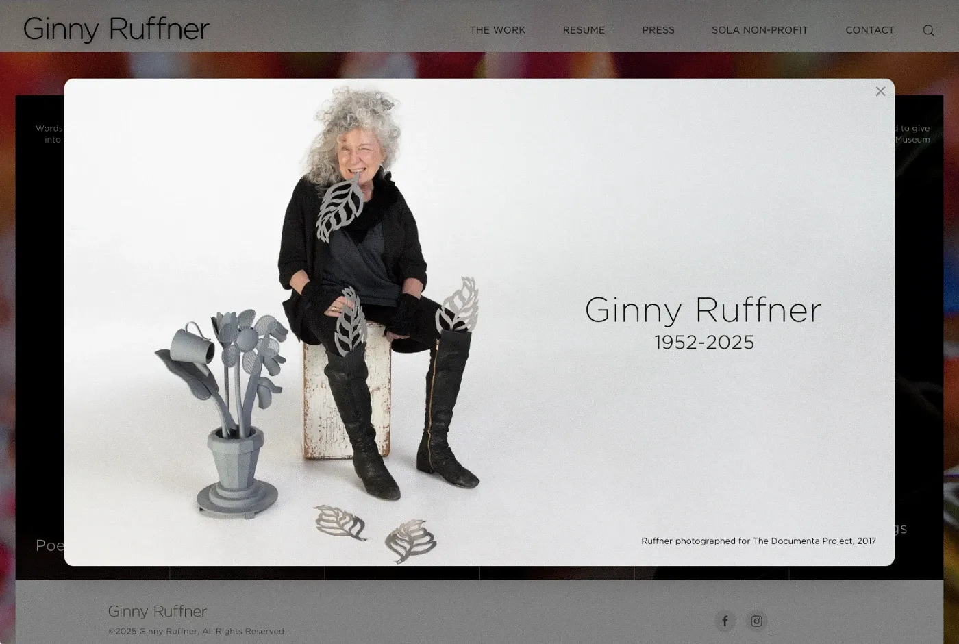 Ginny Ruffner had an international reputation for her glass, bronze, urban installations, and digital-hybrid work. A remarkable force of nature, she needed a site that offered a sortable, immersive catalog spanning more than 40 years of work.