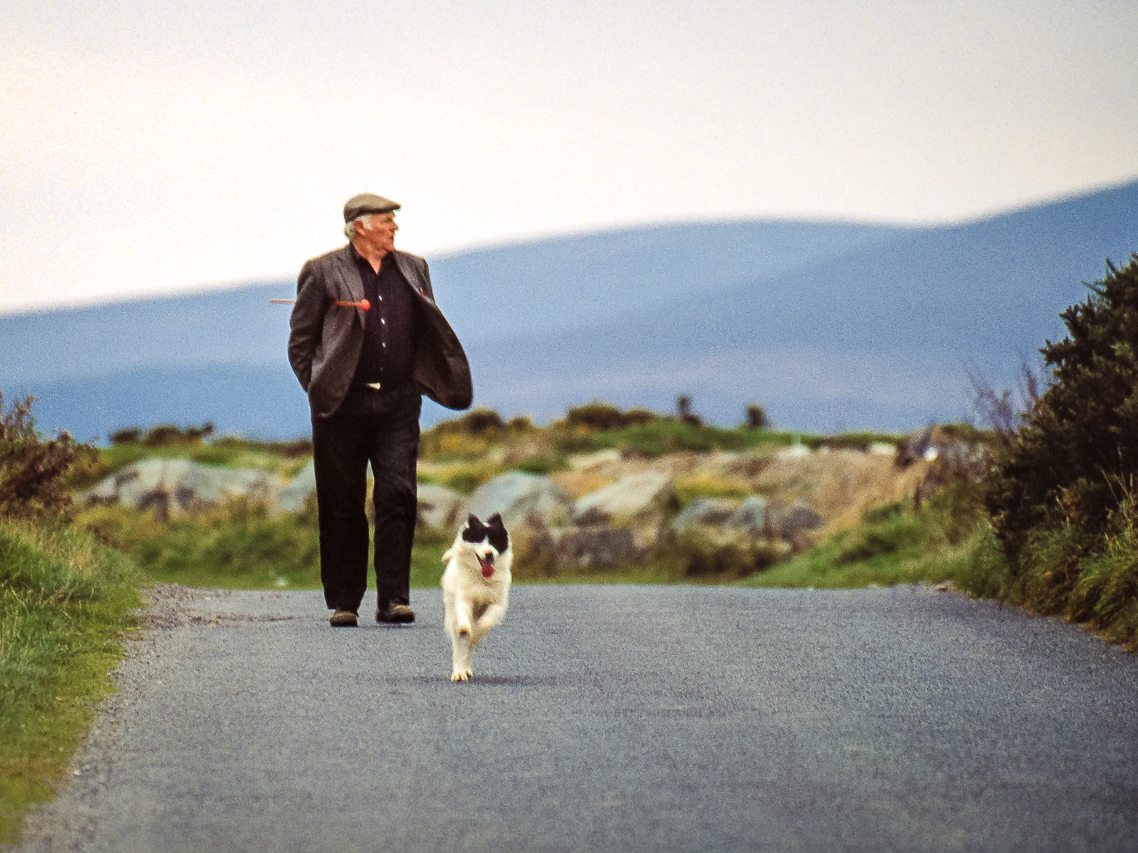 While warming up in the van during a shoot in the Ireland country, a sheepherder and his dog came over the horizon.
