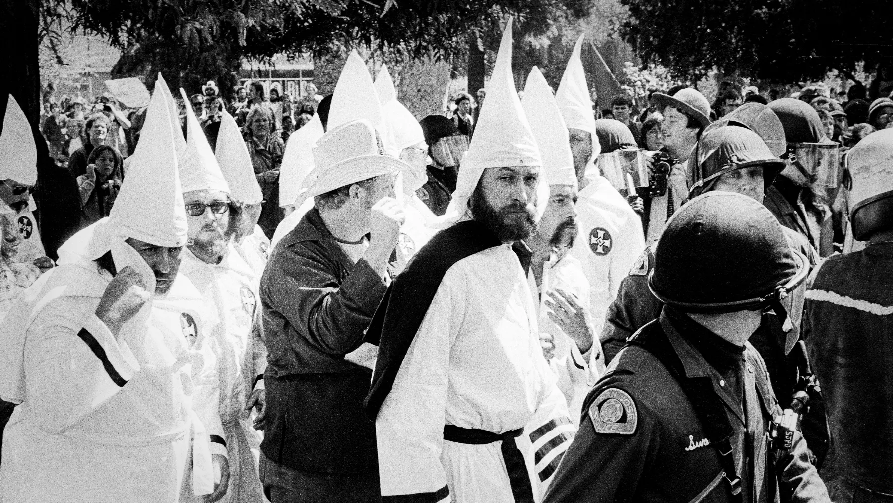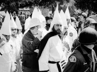 In younger, more foolish times, the photographer might have said something rude to get the attention of a group of angry Klansmen, leaving a rapidly deteriorating protest.