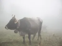 Friendly cows emerge from the fog, high in the Italian Alps. Their bells could be heard from miles away.