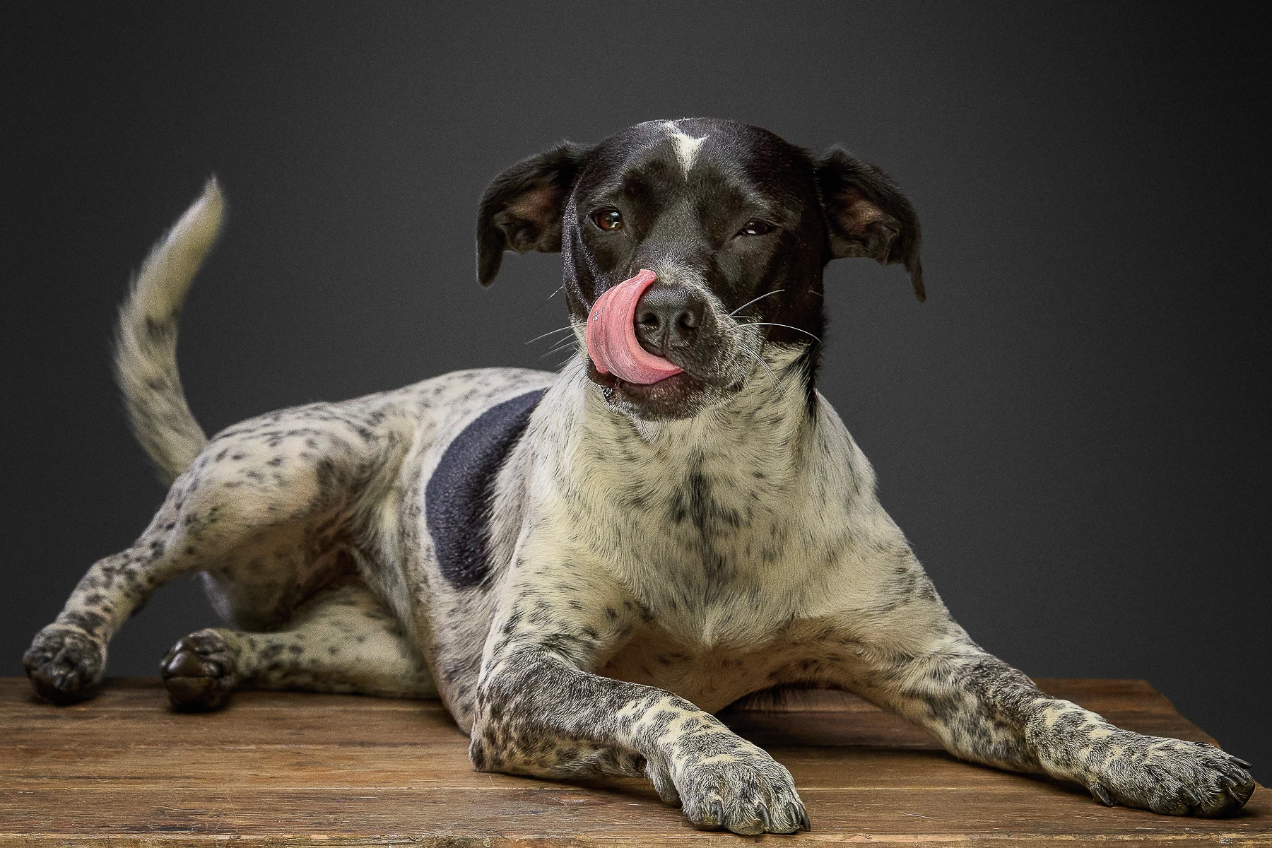 Gitzo is the laziest dog you’ll ever meet. Even tasks that don’t require much energy, like modeling for a photo shoot, put her right to sleep. The one thing that will interrupt her slumber is the sound of the lid coming off the peanut butter jar, which sounds like no other lid coming off any other kind of jar. It will bring her out of the deepest sleep and into the kitchen before she realizes she’s there.