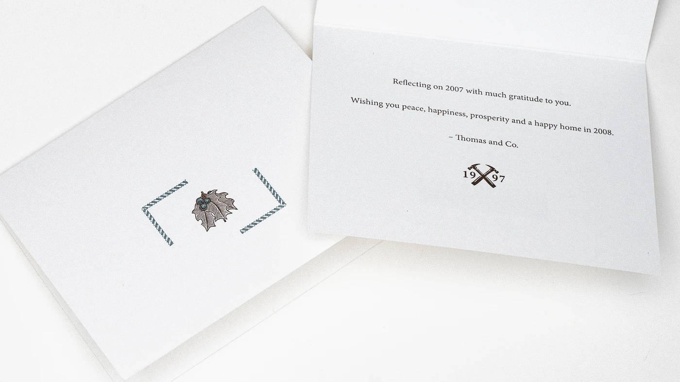 As part of a larger presentation system created for Thomas Jacobson Construction, we designed a special letterpress-printed and scored box—clasped with a finishing nail—that wrapped around gallery cards showcasing various projects suited to the audience it was meant for.