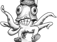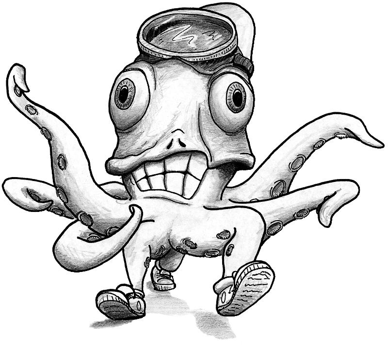 Squiddley (who's actually an octopus) was developed as part of an animated, Toy Story-like character for an Ivar's commercial. Now our steampunk octopus storms through a dystopian landscape in search of love.
