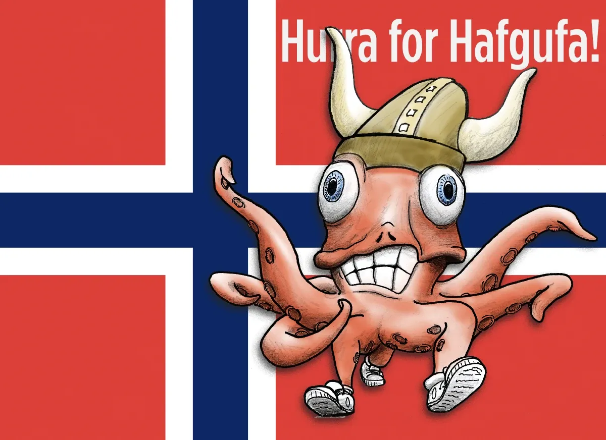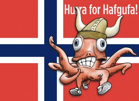 Squiddley has been repurposed several times over the years, including his role as mascot for a Norwegian Syttende Mai parade, doubling as Hafgufa the Kraken.